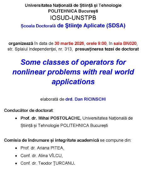 Facultatea de ŞTIINŢE APLICATE, Universitatea Naţională de Ştiinţă şi Tehnologie POLITEHNICA Bucureşti